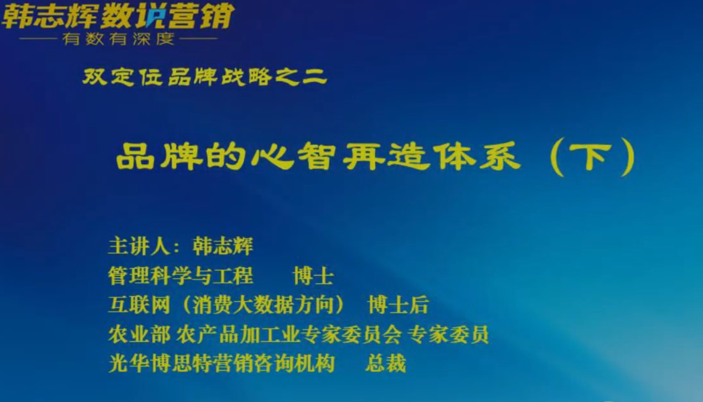 首页 > 智库 > 专家团课题库 > 中心专家团系列课程 上一篇 : 韩志辉——品牌的心智再造体系(上) 下一篇 : 【双定位再造行业领袖】雍雅君—品牌系统化新模式构建(下) 中心专家团系列课程 韩志辉——品牌的心智再造体系(下) 作者:小编 日期:2020-05-06 点击数: 本视频需要知识付费 请使用手机扫码支付后在手机中观看 分享按钮